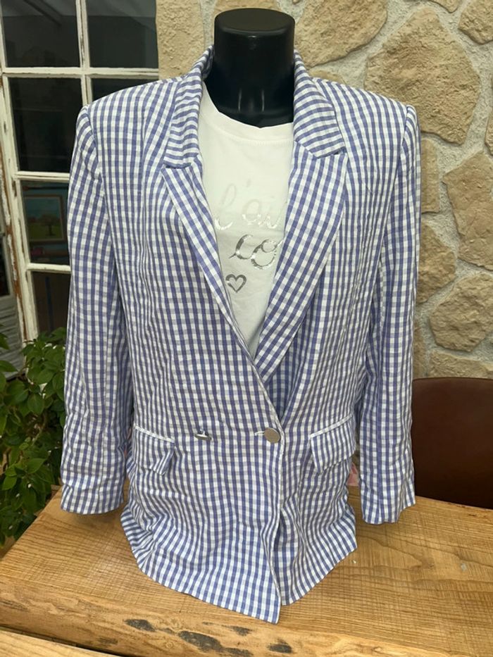 Veste blazer tailleur pimkie oversize taille M 38 Lila et blanc à carreaux Vichy - photo numéro 1
