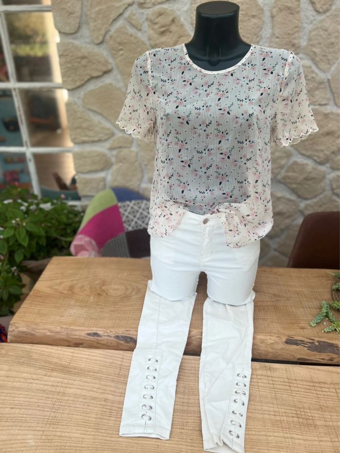 Karl Marc Jacobs Neuf avec étiquette Blouse t-shirt taille M 38 transparent été blanche rose Fleury - photo numéro 1