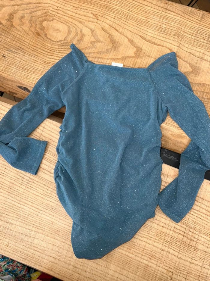 Body Zara à manches longues Transparence sur les bras sinon il est doublé Jamais porté Taille 10 ans Magnifique bleu à paillettes style princesse cendrillon ..