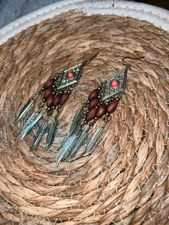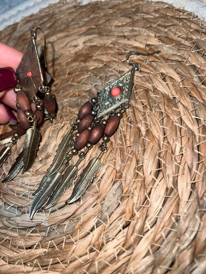 Boucles d’oreilles femme doré fantaisies plumes - photo numéro 4