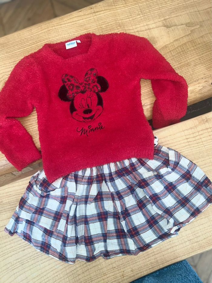 Ensemble 5 ans jupe vertbaudet pull tout doux Disney Minnie rouge pilou