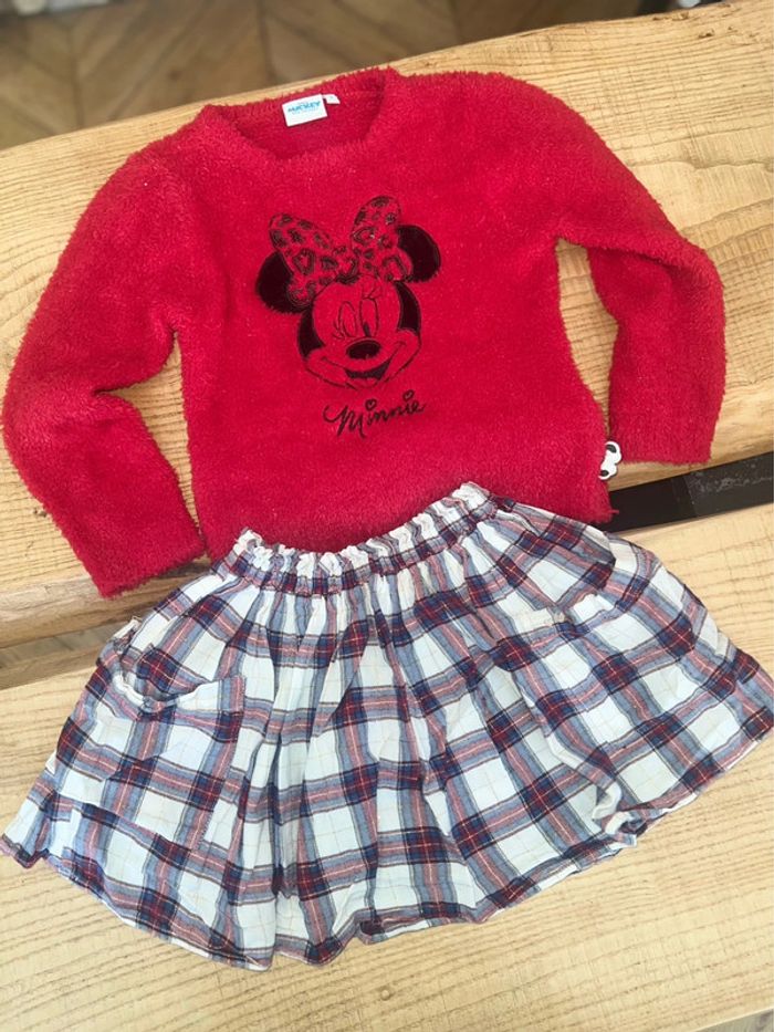 Ensemble 5 ans jupe vertbaudet pull tout doux Disney Minnie rouge pilou - photo numéro 1
