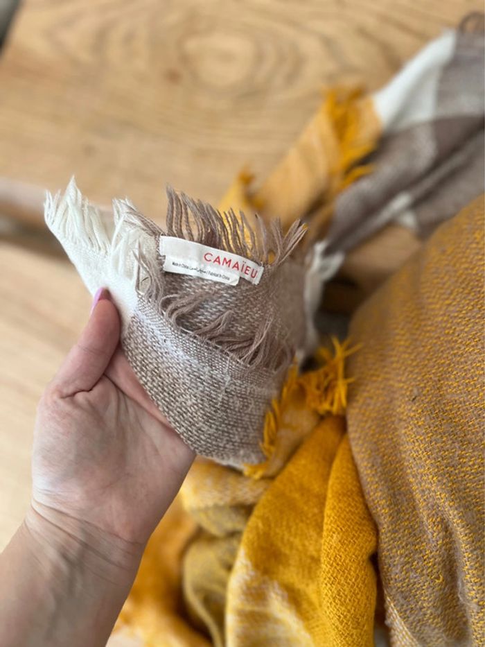 Écharpe / foulard / châle  hiver femme beige jaune moutarde blanche xxl grande chaise camaïeu - photo numéro 2