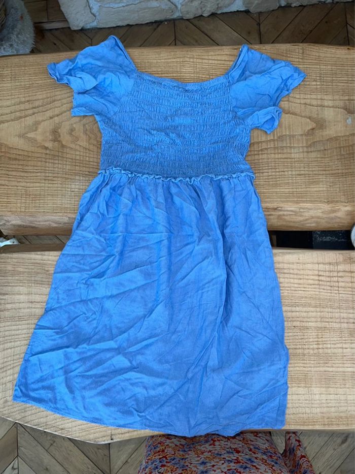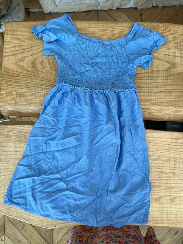 Robe 13-14 ans bleu été légère à smocks H&M - photo numéro 1