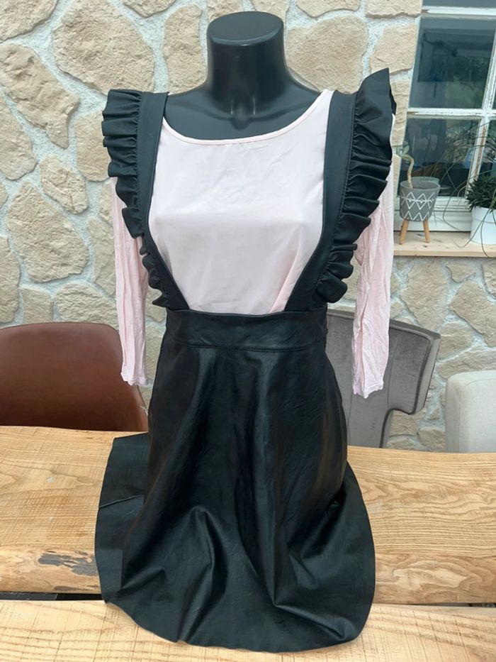 Ensemble femme Robe / salopette / jupe à bretelles en simili cuir noir taille S Marque made in italy Blouse tex Taille 38