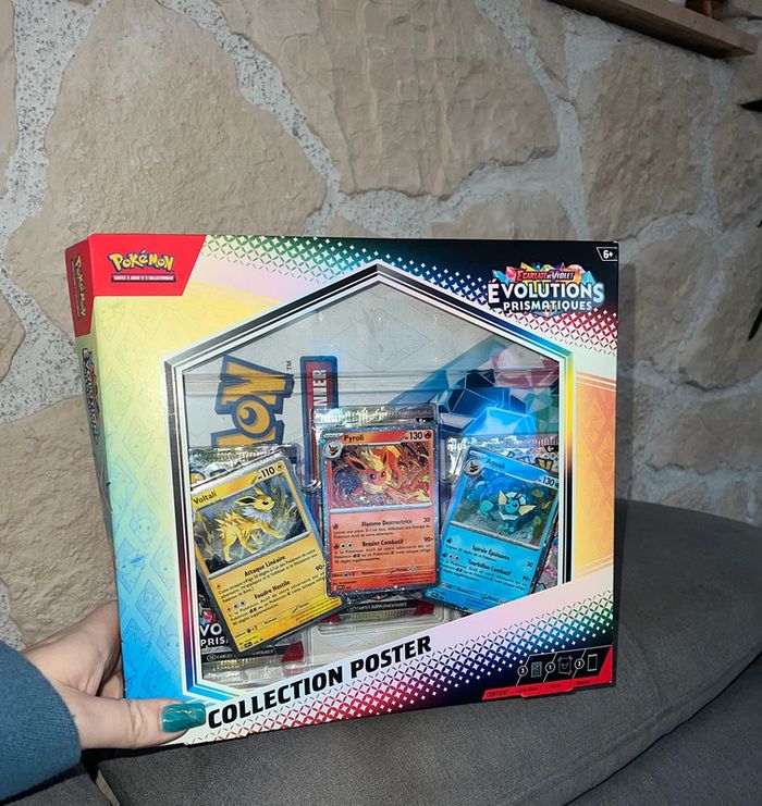 Vend Coffret poster Pokémon évolution prismatique reconditionné 3 boosters avec au moins 1 brillante reverse et les 3 cartes promo neuves jamais déballées Poster neuf jamais déballé Si votre enfant souhaite choisir parmis la centaine de double pas de problème