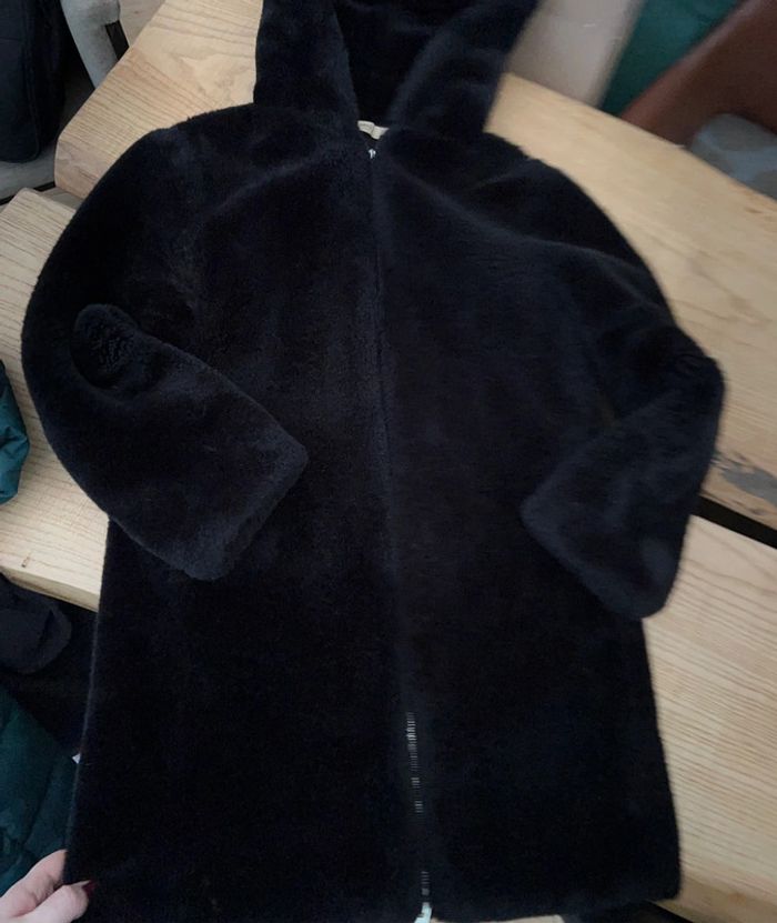 Manteau mango taille S long noir fausse fourrure en capuche - photo numéro 3