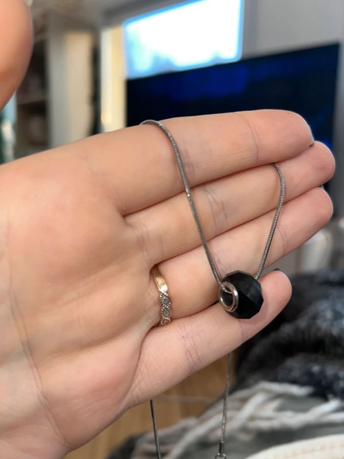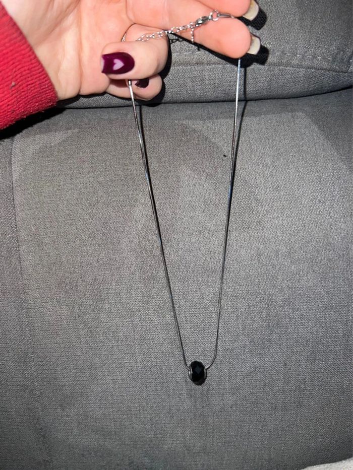 Collier chaîne fine avec Perles en verre noir à facettes en pendentif Acheté à la bijouterie