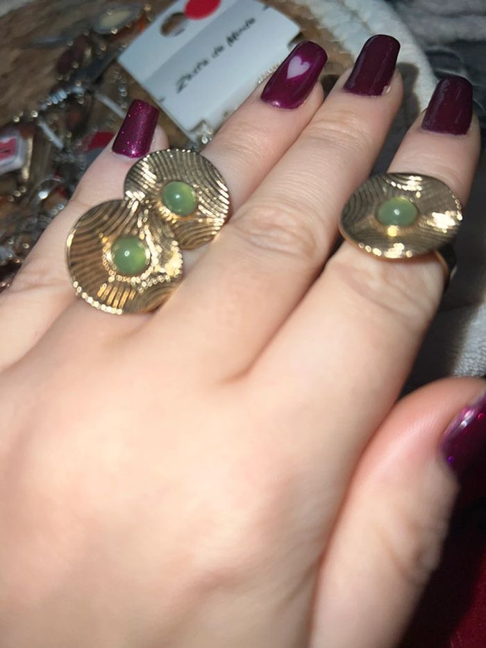 Ensemble parure bijoux doré vert kaki bague réglable bouche d’oreille - photo numéro 5