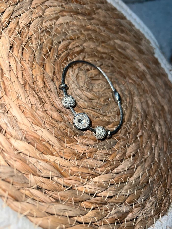 Bracelet jonc charm Argent Acier inoxydable Manque quelques strass aux charmes très discret
