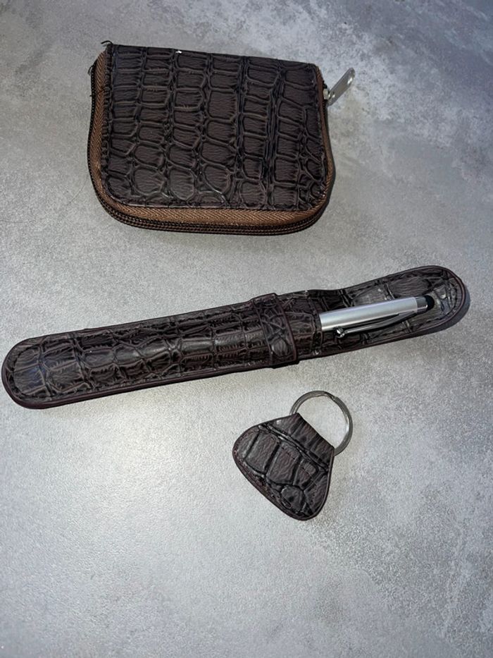Ensemble porte monnaie porte crayon crayon porte clé porte carte miroir neuf Maroquinerie marron effet crocodile neuf Homme femme