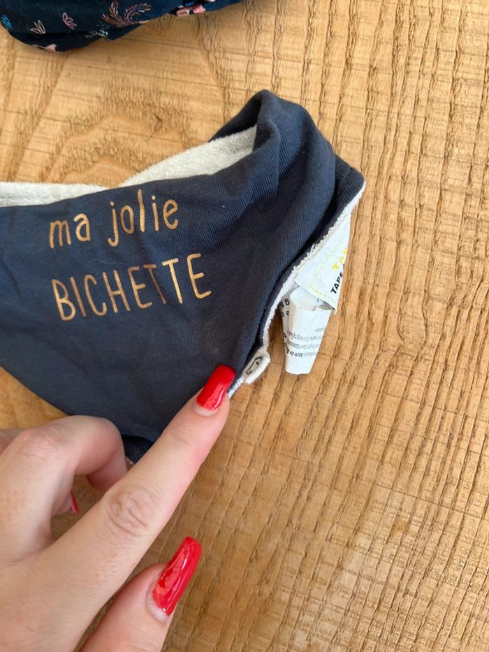 Ensemble tape à l’œil Bandeau 3 - 9 mois neuf étiqueté Bavoir triangle « ma jolie bichette » bon état