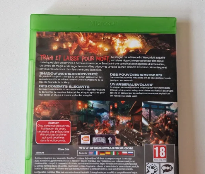 Jeu Microsoft XboxOne Shadow Warrior en très bon état et fonctionels. Envois rapide et soigner 📦. Divers Figurines Pokémon, Mario, Rayman 2 etc... à vendre dans ma boutique. Divers Figurines Pokémon, Mario, Luigi, Yoshi, Toad,Rayman 2 etc... à vendre dans ma boutique. D'autres jeux disponibles dans ma boutique: Nintendo Switch Wii DS 3DS 2DS PS4 PS3 PS2 PS1 PS5 Ps One PLAYSTATION SONY PSP Playstation Portable Umd MICROSOFT XBOX ONE 360 SERIES X Super Nintendo Snes Nes Gamecube Game Cube N64 Gameboy Game boy Dreamcast Sega Master System Megadrive Game Gear Pokémon Mario Bros Megaman Mega Man Films Blu ray Dessin Animé Dvd Bluray Amiibo Play Fat Slim Ultra New Xl Dsi .... Geek Gamer Gameur Gaming Room Deco Led Collection Collectionneur Goodies Set Up New Xl Ubisoft Gioco Game Juegos Giochi Jogos Spellen Spell Play Full Set Fullset Fullsetteur