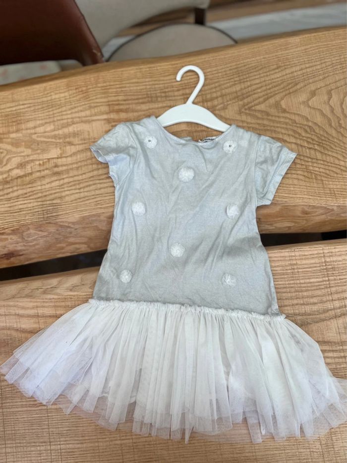 Robe 2-3 ans 2 3 pommes tulle fleurs cérémonie été argent - photo numéro 3