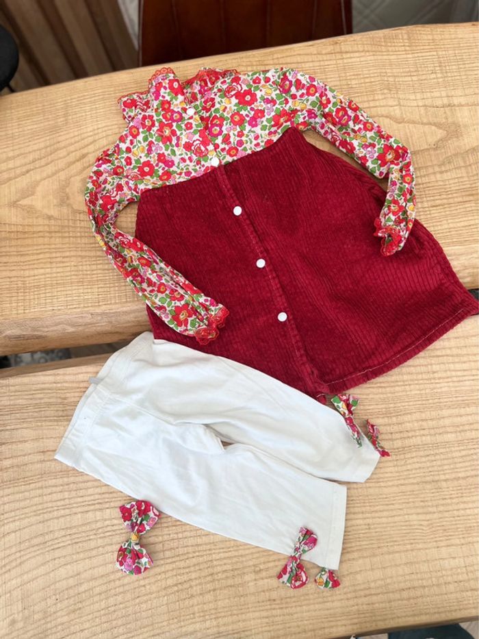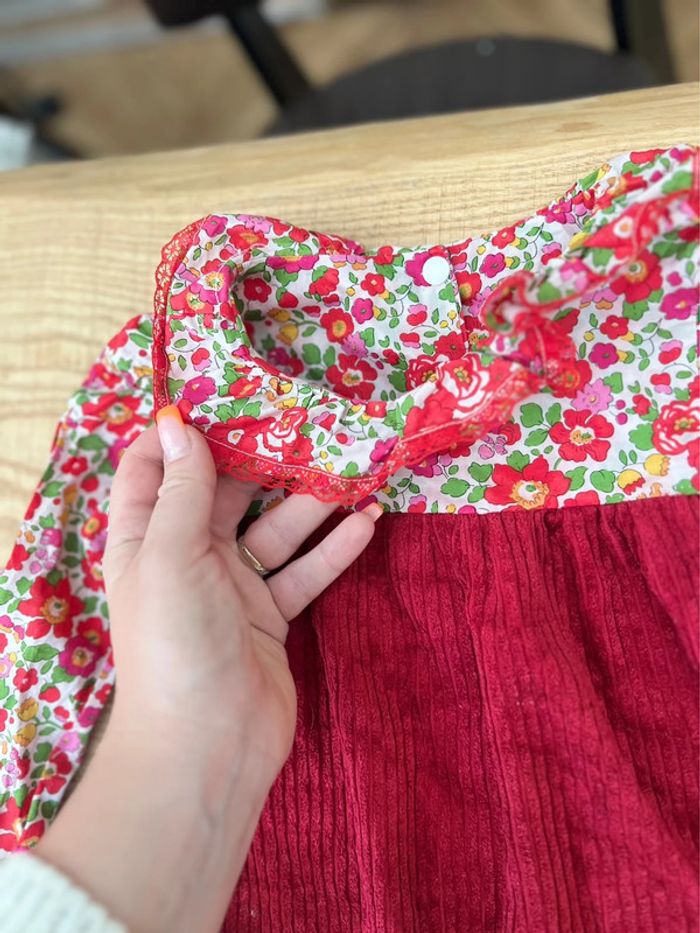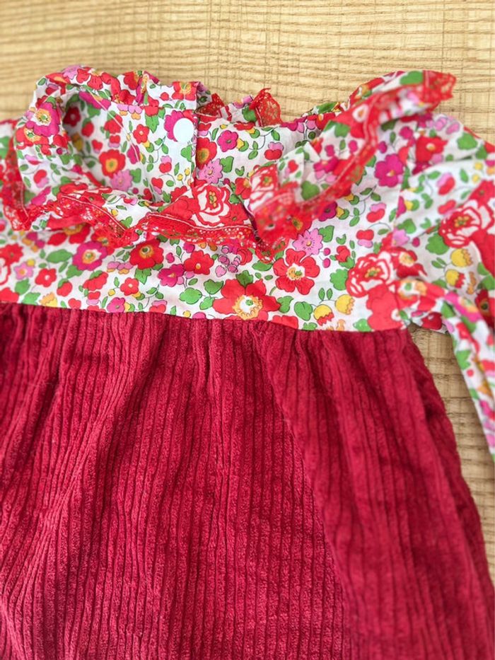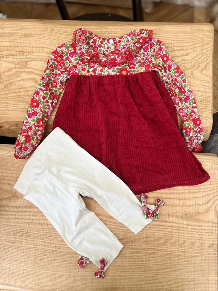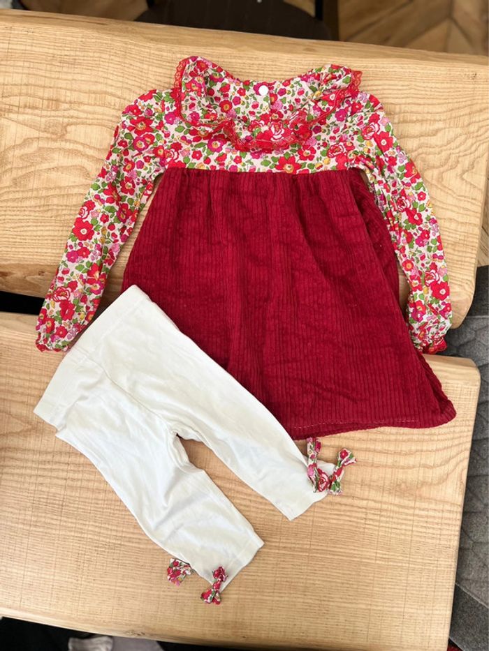 Ensemble fait par une créatrice Robe, legging + pince à cheveux 2-3 ans En très bon état Mateuere coton velours dentelle Col Claudine Liberty of london betsy utilisé également par jacadi