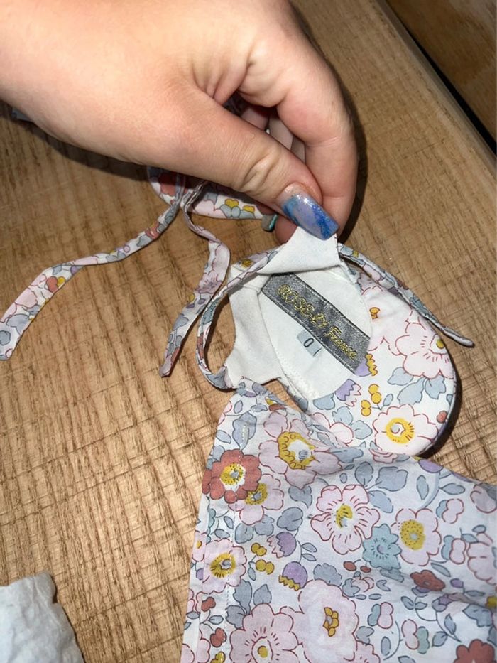 Ensemble fait par une créatrice en liberty betsy Blouse + bandeau + chaussons Rosely France 6 mois + bloomer Zara 6-9 mois Ce n’est pas Jacadi