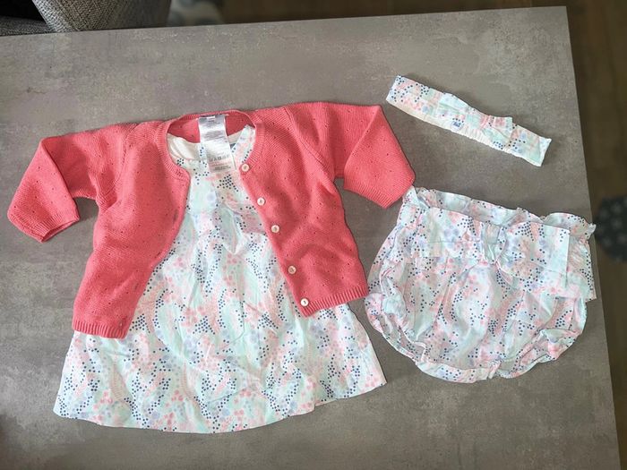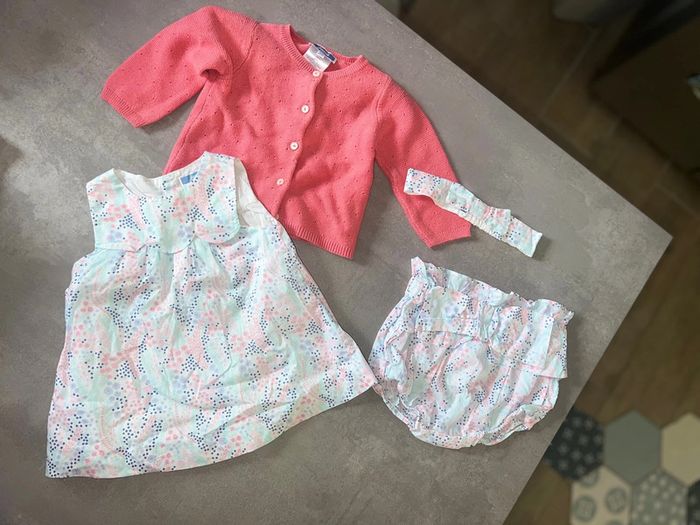 Ensemble été Marque Jacadi Taille 6 mois Robe tbe Bloomer tbe Bandeau tbe Gilet tbe mais petite tache manche Voir photo 4