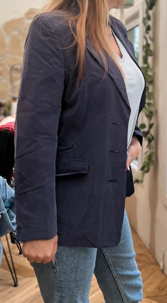 Blazer long femme bleu marine oversize tailleur vintage taille 38 40 M L - photo numéro 7
