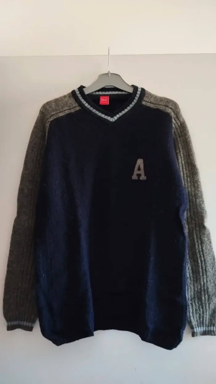 Pull bleu et gris laine homme tex taille 2 - photo numéro 1
