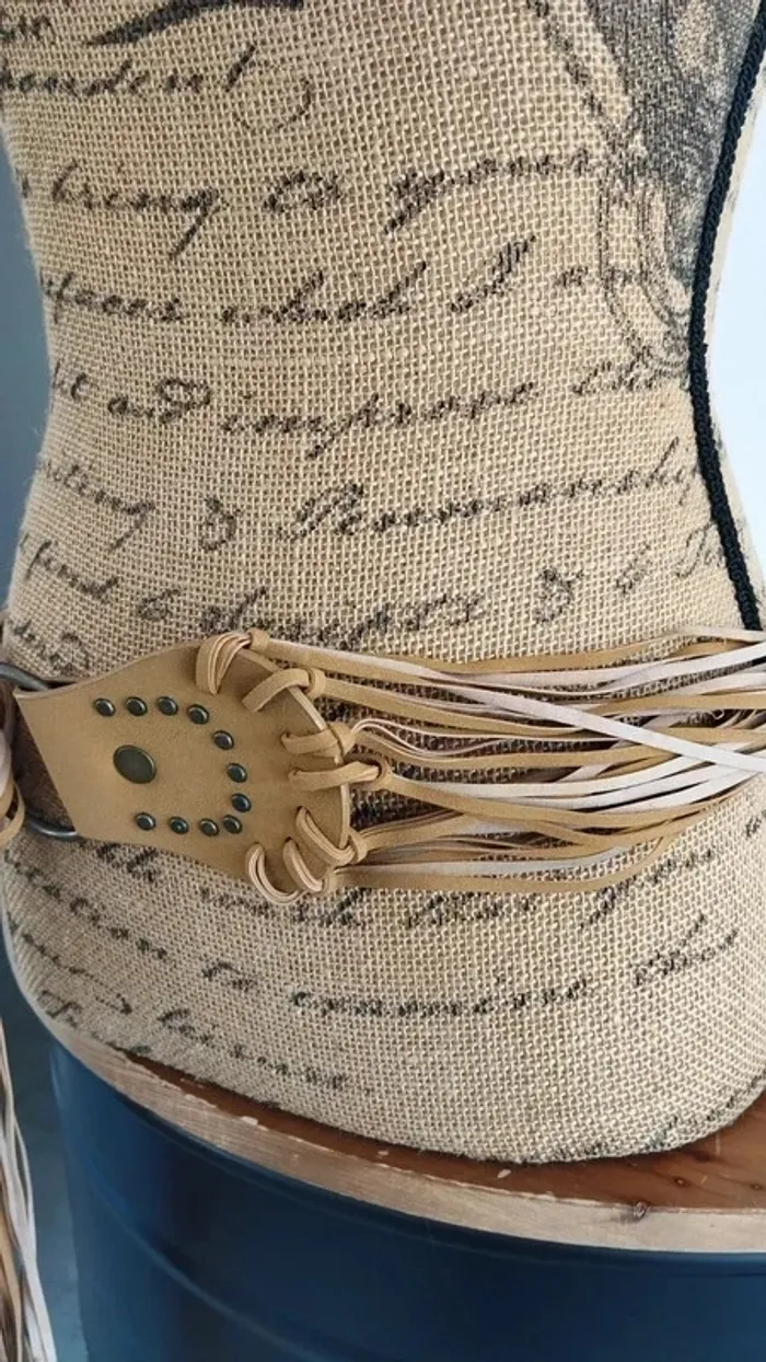 Ceinture a lanières camel et beige accessoire mode femme ajustable - photo numéro 1