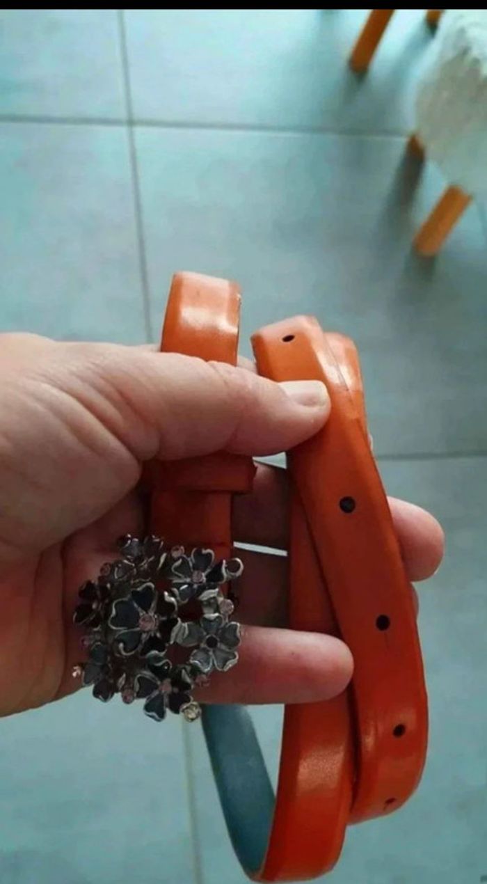 Ceinture fine  Camel  boucle  fleurs - photo numéro 7