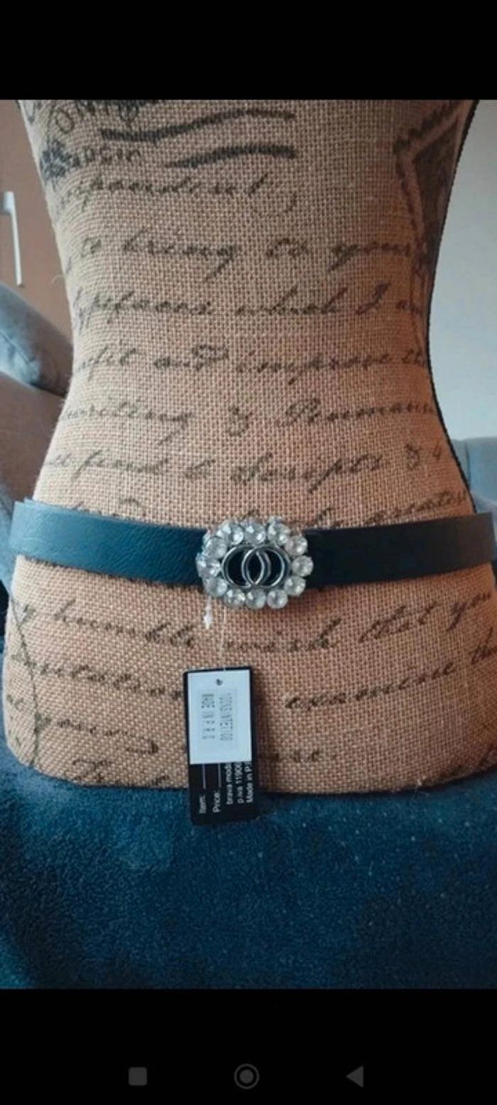 Ceinture noire boucle effet pierres 85 cm femme - photo numéro 1