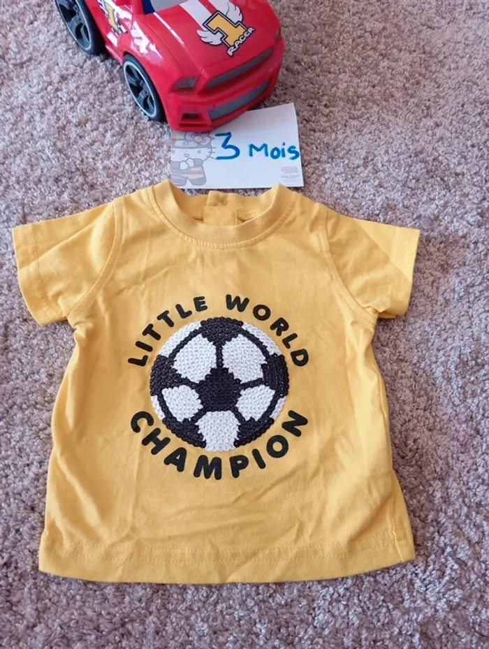T-shirt jaune taille 3 mois Ballon de foot #l59n_3moisg