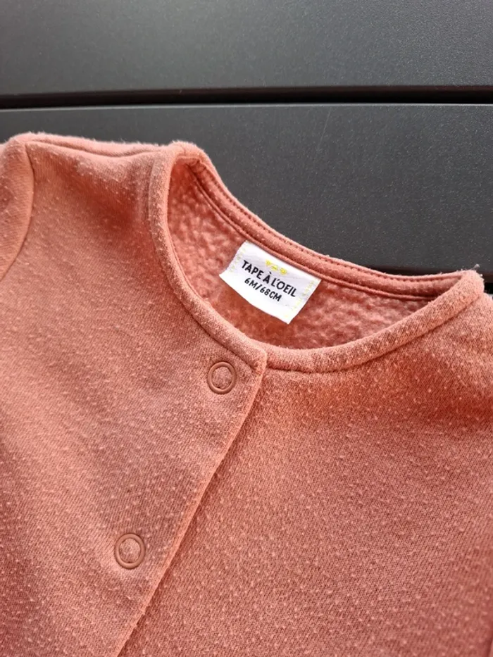 Très jolie veste saumon avec des paillettes Taille 6 mois En très bon état. Tape à l'œil