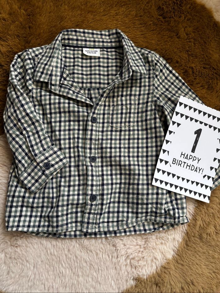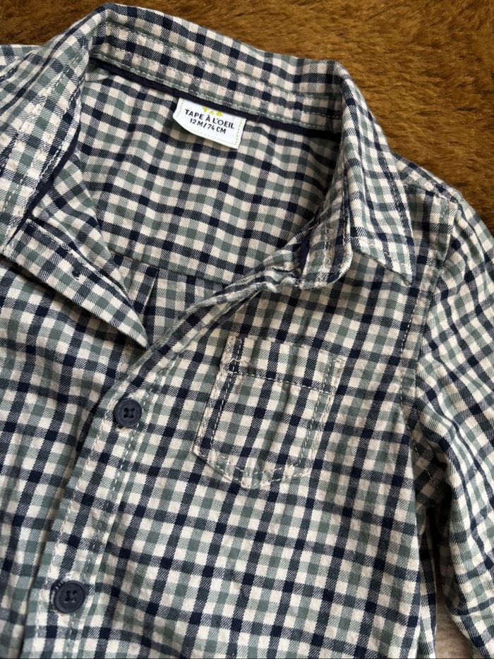 Chemise carreaux vert/bleu/beige Tape À L’Oeil t.12m