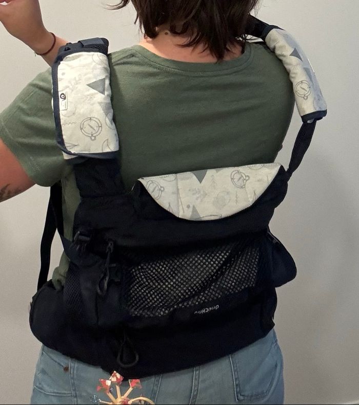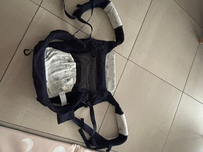 Porte bébé physiologique de 9 mois (ou dès que bébé tient assis) à 15 kg. Utilisable en ventrale ou en dorsal. Hyper léger et compact. Prix neuf : 70€