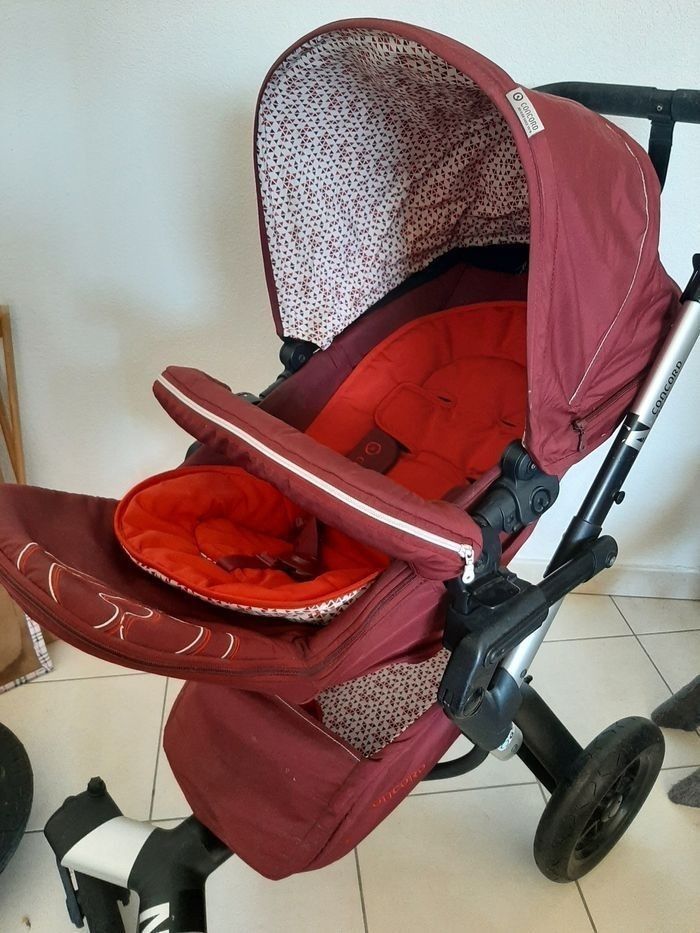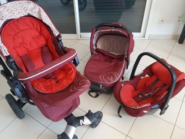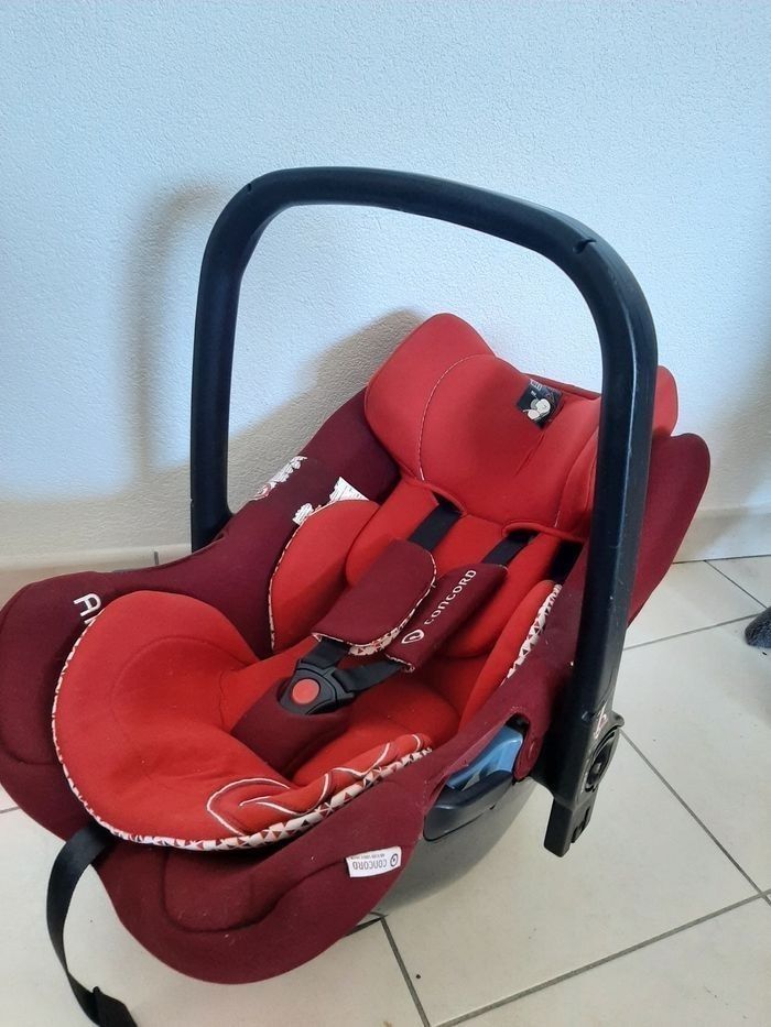 Combiné trio Neo Concord avec cosy Groupe 0+ 'Air' et Nacelle Sleeper 2.0 : Dès la naissance. Concord Neo Poussette, 4 roues avec suspension, châssis en aluminium, pour enfant à partir de 6 mois, couleur Flaming Red. Pratique pour les chemins. Vendu avec protections de pluie et soleil. Guidon en silicone, résistant et agréable au toucher qui s'ajuste pour atteindre la hauteur souhaitée Frein de fixation sur le guidon, facile à utiliser d'une seule main. Fermeture à glissière la capuche offre une protection maximale contre le soleil. Grand hamac avec dossier inclinable en plusieurs positions, y compris horizontale. L'adaptateur TRAVEL SYSTEM permet un changement facile et rapide du siège et des composants.