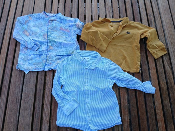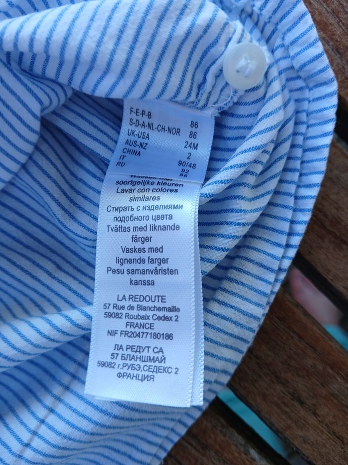 - Chemise blanche a fines rayures bleu clair. Marque la Redoute, taille 86 cm