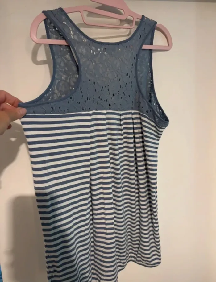 Débardeur rayé bleu et blanc Phildar avec dentelle – Taille L - photo numéro 2