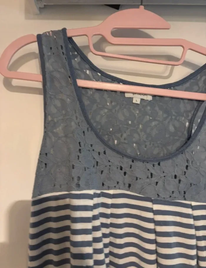 Débardeur rayé bleu et blanc Phildar avec dentelle – Taille L