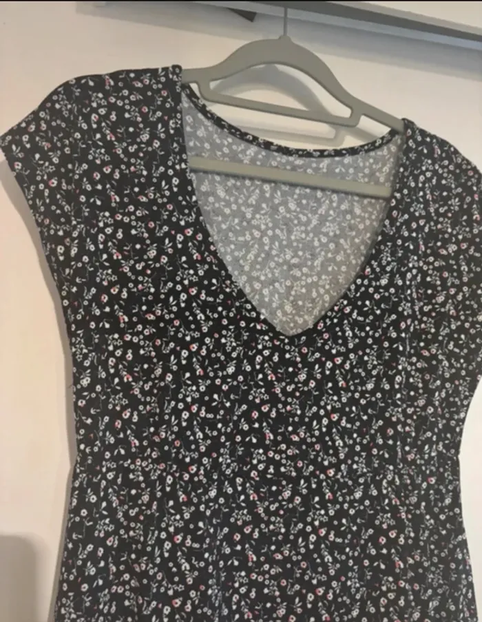 🌸 Jolie robe noire à petites fleurs blanches et rouges – taille s - photo numéro 1