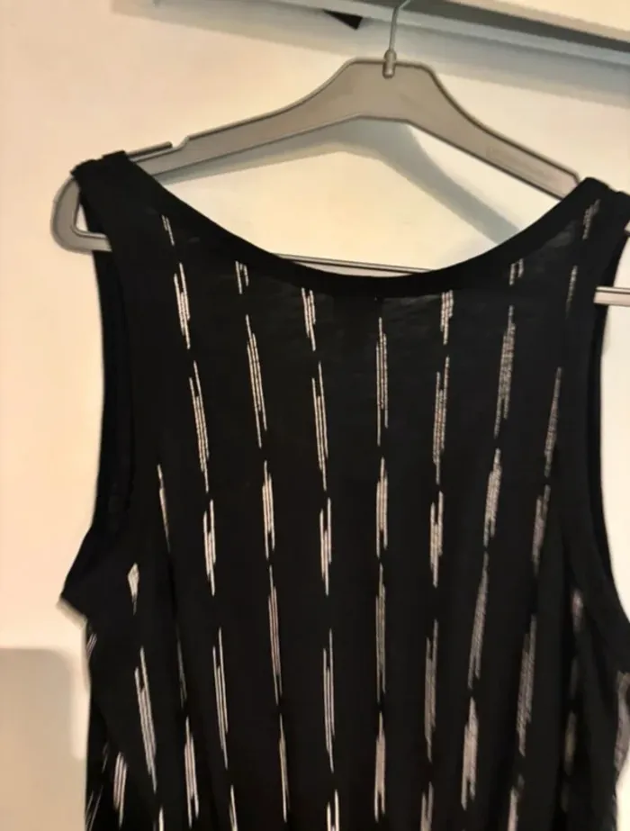 Robe noire sans manches de la marque H&M Basics, taille S. Motifs graphiques blancs allongés, coupe fluide avec taille légèrement resserrée, très agréable à porter. En très bon état, parfaite pour l’été ou à porter avec une veste légère à la mi-saison. 📏 Taille : S 🎨 Couleur : noir et blanc 📍 Marque : H&M 📦 État : très bon état #robe #robeh&m #robenoire #robeété #robesansmanches #lookété #lookdécontracté #fashionaddict #petitetaille #tailleS #blackdress #h&m #hm #modedujour #ootd #slowfashion #minimaliste #robechic #casualdress #basiclook #lookfemme #tenuefemme #vêtementfemme #vintedfrance #vintedfemme #vintedstyle #kawaba