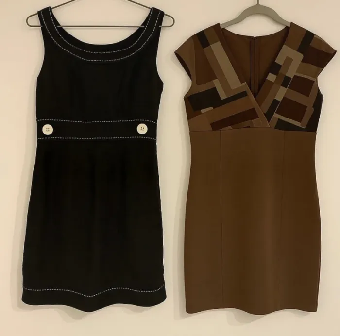 Je vends un lot de deux robes femme taille L (équivalent 38/40), en très bon état : 👗 Robe noire Promod • Style rétro chic • Détails couture blanche et gros boutons • Fermeture zippée côté • Taille EU 38 – Marque : Promod 👗 Robe imprimée géométrique • Tons bruns et taupe • Coupe droite, décolleté croisé • Fabriquée en Italie • Composition : 50 % viscose, 50 % coton • Taille L 🌟 Idéales pour une tenue habillée ou de bureau ! #promod #robenoire #robegeometrique #roberetro #robechic #lookretro #lookchic #tailleL #femme40 #modefemme #lotderobes #lotvetements #italianfashion #viscose #robebureau #lookfeminin #vinted #vintedfind #kawaba #femme38#femme40