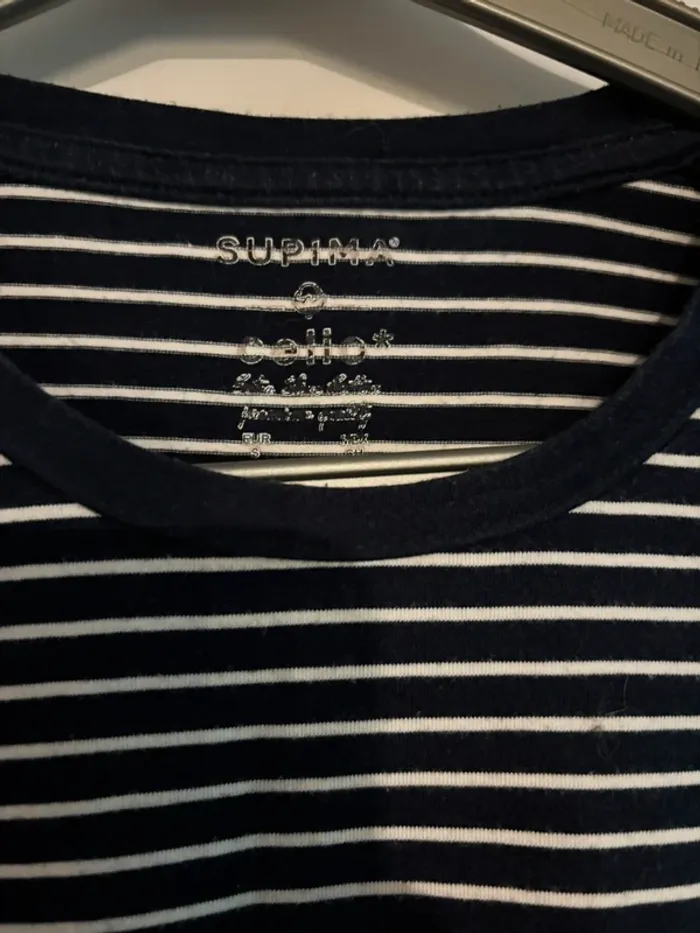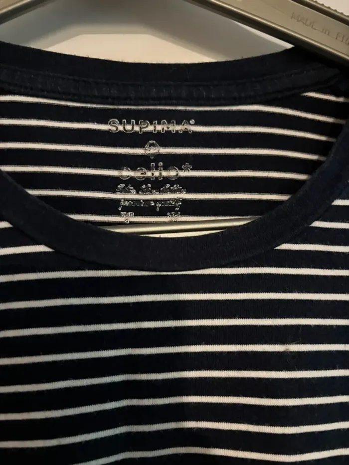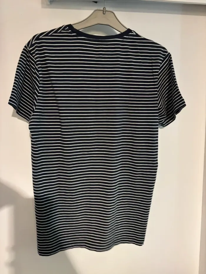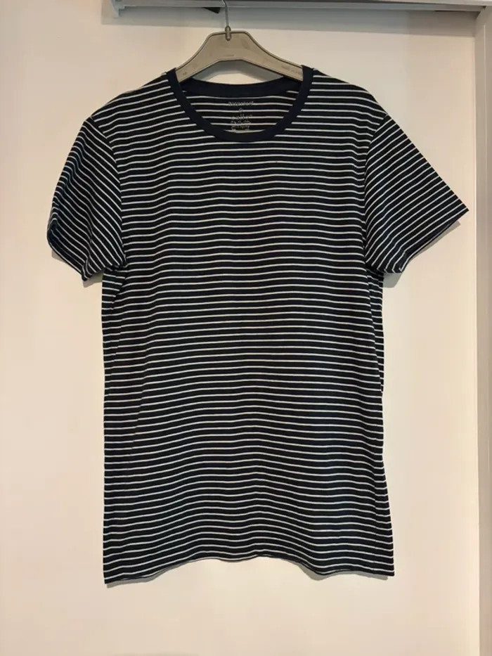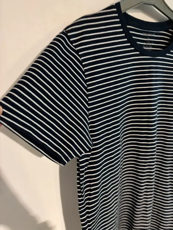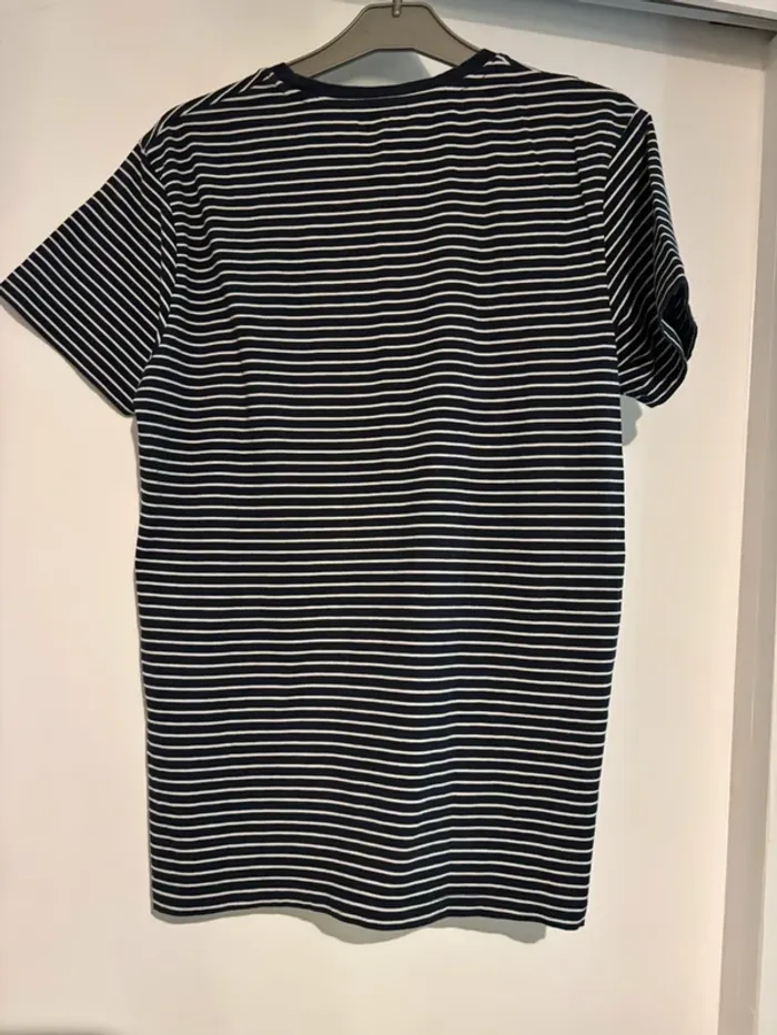 T-shirt à rayures bleu marine et blanches de la marque CELIO, en coton Supima de haute qualité. Tissu doux et agréable à porter, légèrement extensible (96 % coton, 4 % élasthanne). Coupe classique, parfait pour un look casual et confortable. Taille S, très bon état. État : Très bon état Taille : S - Homme Marque : CELIO #celio #tshirt #rayures #supima #tailleS #homme #vinted #casual #modehomme #kawaba#homme36#été