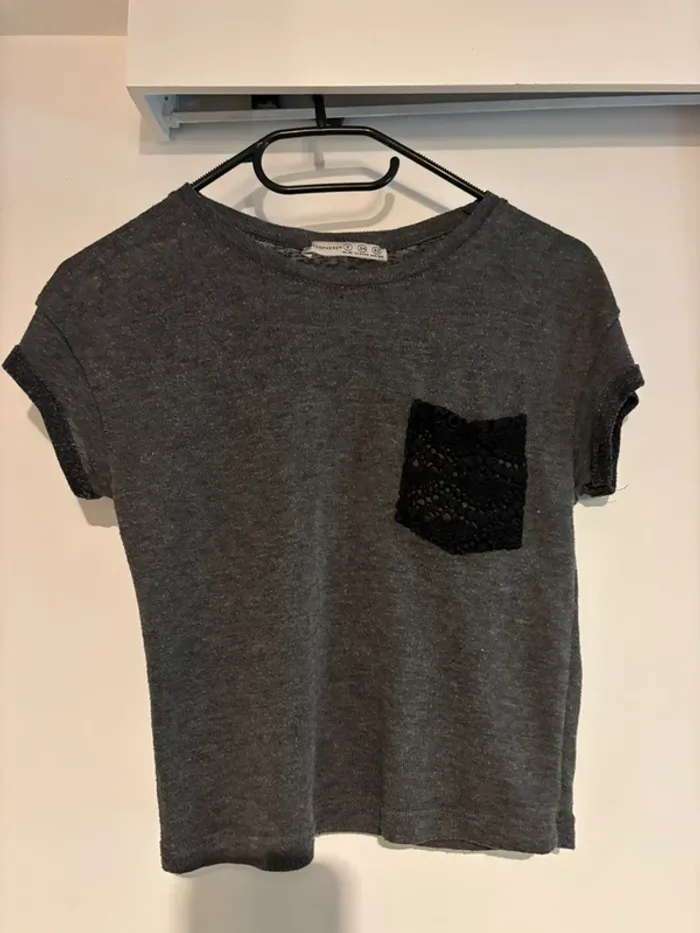 T-shirt gris Atmosphere avec poche en dentelle - T34 - photo numéro 1