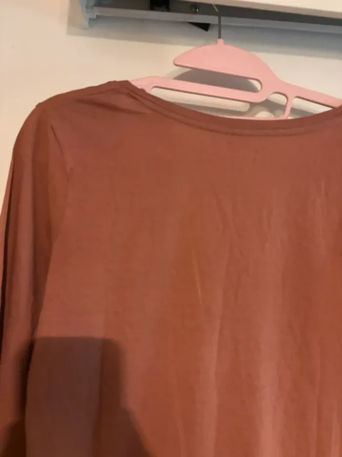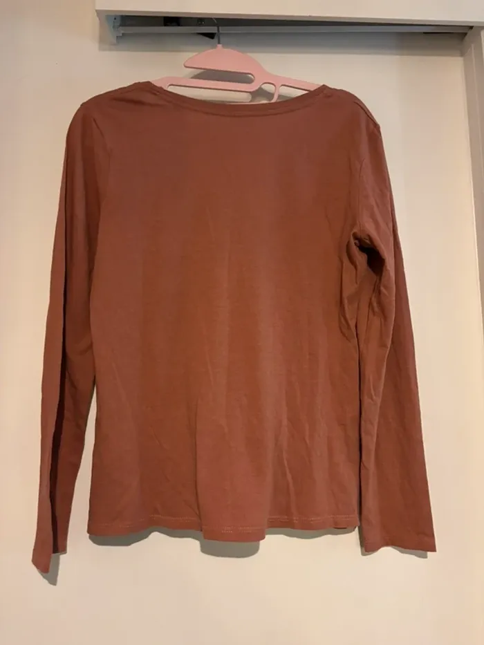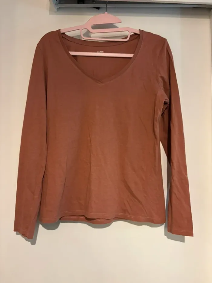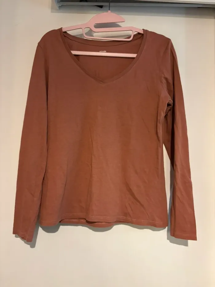 T-shirt manches longues Kiabi col V rose - taille M - photo numéro 1
