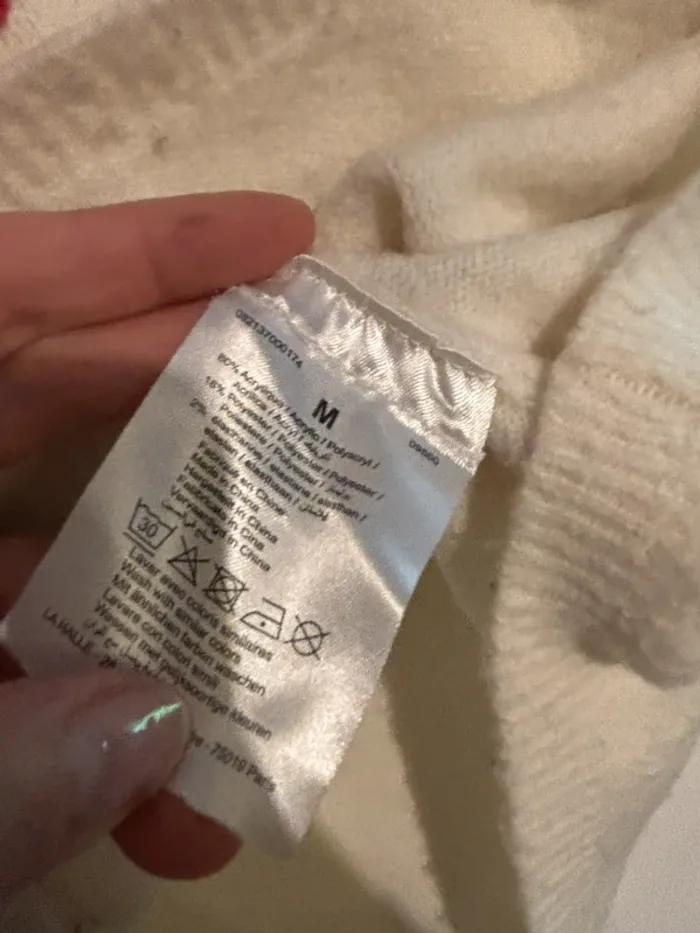 Pull doux et confortable de la marque CREEKS. Couleur crème avec inscription en relief rouge “GIVE ME A BREAK” à l’avant. Taille M, manches longues avec poignets élastiqués. Parfait pour un look cocooning ou casual. Composition : 74% acrylique, 23% polyester, 3% élasthanne. État : Bon état (quelques bouloches visibles, voir photos) Taille : M Marque : Creeks Couleur : Crème avec écriture rouge Pull doux et confortable de la marque CREEKS. Couleur crème avec inscription en relief rouge “GIVE ME A BREAK” à l’avant. Taille M, manches longues avec poignets élastiqués. Parfait pour un look cocooning ou casual. Composition : 74% acrylique, 23% polyester, 3% élasthanne. État : Bon état (quelques bouloches visibles, voir photos) Taille : M Marque : Creeks Couleur : Crème avec écriture rouge