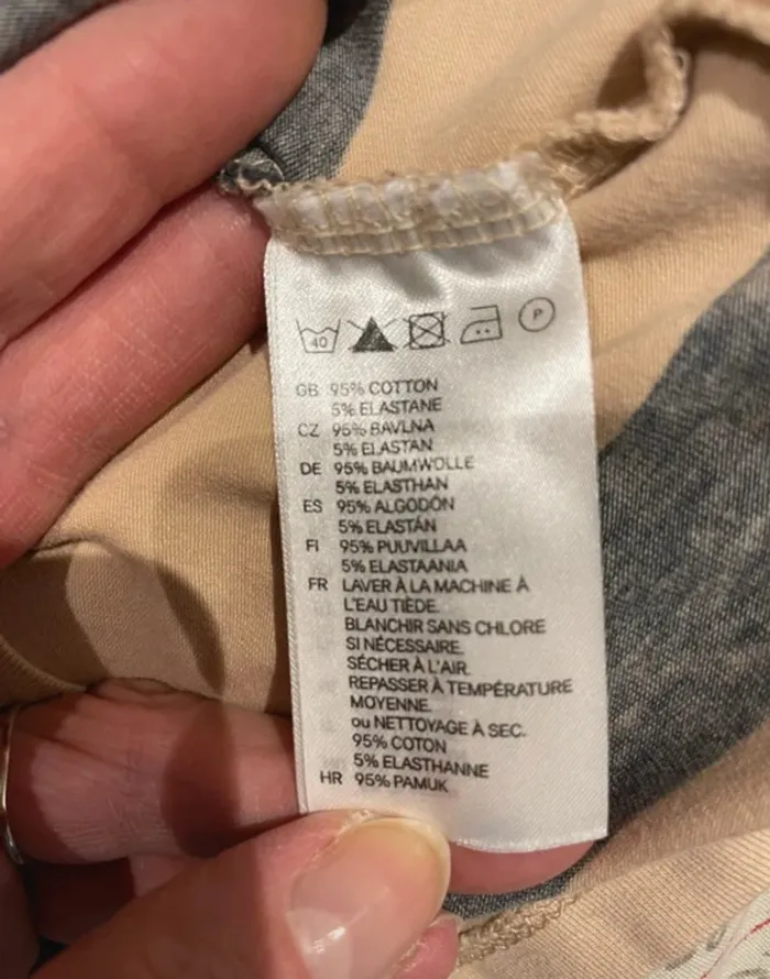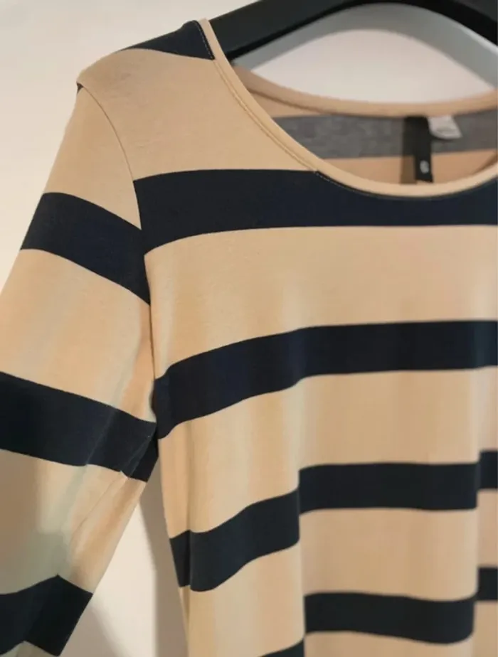 T-shirt à manches 3/4 de la marque DIVIDED by H&M, taille S. Rayé noir et beige, coupe droite et légèrement ajustée. Confectionné en coton (95 %) avec une touche d’élasthanne pour plus de confort. Très bon état, peu porté. État : Très bon état Marque : DIVIDED by H&M Taille : S Couleur : Beige et noir Matière : 95 % coton, 5 % élasthanne #tshirt #divided #hm #teeS #manches34 #beige #rayures #modefemme #lookcasual #kawaba#femme36 #été