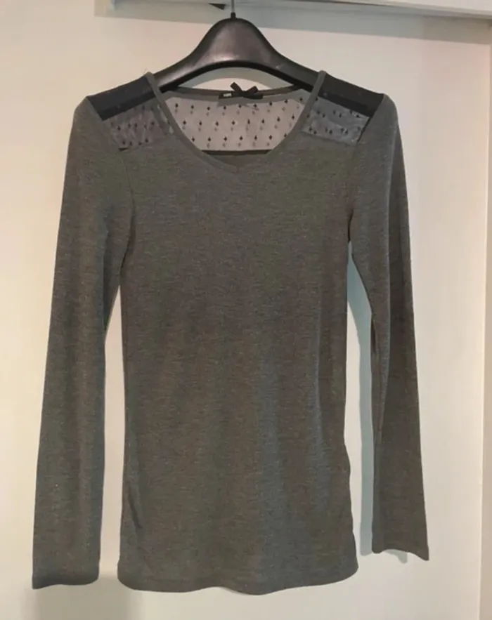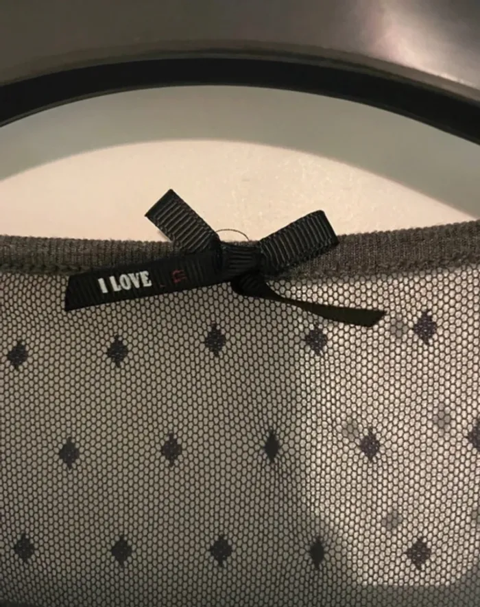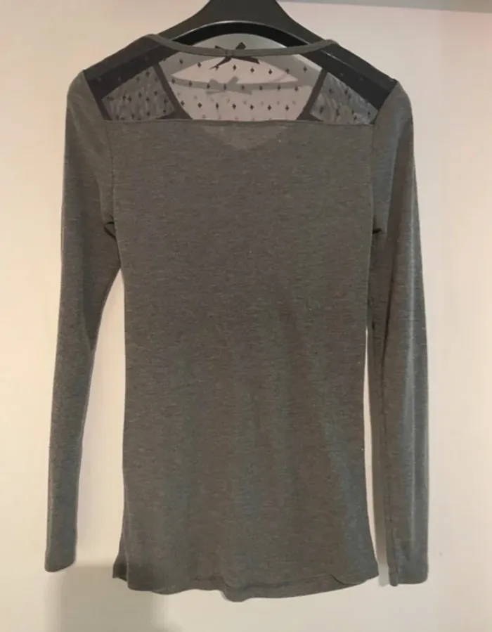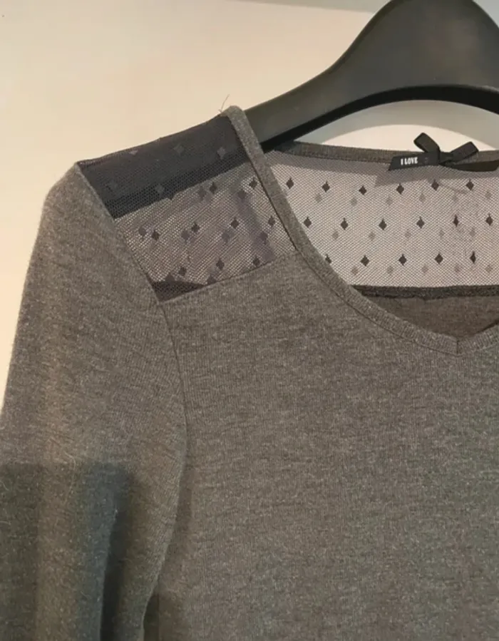 Tee-shirt manches longues gris avec tulle plumetis – I Love – Taille S - photo numéro 3