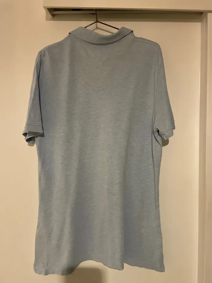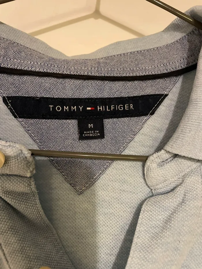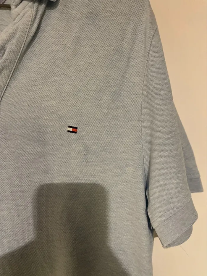 Polo Tommy Hilfiger Bleu ciel Taille M - 38 Largeur : 42 cm et Longueur : 68 cm 100 % coton En très bon état sauf en bas un peu abîmé de chaque côté ( 2 dernières photos ) #tommyhilfiger #teeshirttommyhilfiger38 #homme38 #hommeM #kawaba #coton