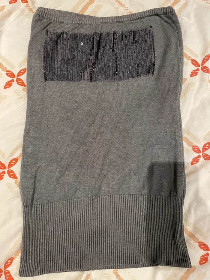 Pull bustier gris à sequin Taille unique Marque : envie collection Très bon etat #pullbustier #pullfemme #pullsansmanches #femme36