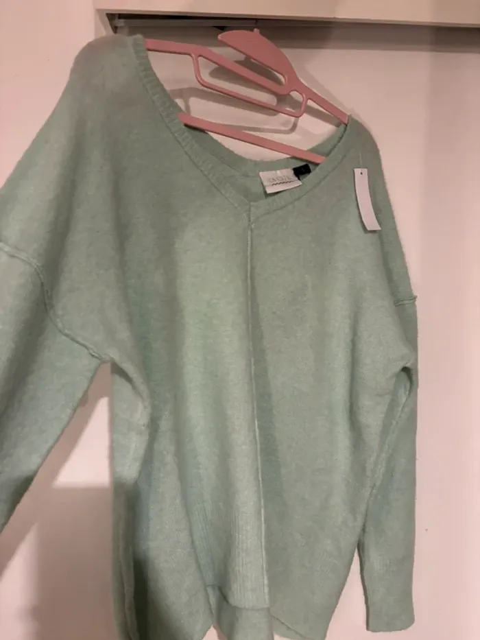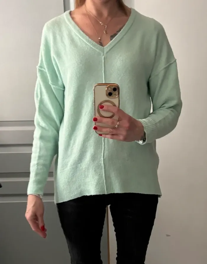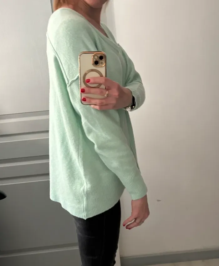 Jolie pull col V vert d eau Taille S / 36 mais convient à un M / 38 Oversize Marque : La City Neuf Réduction sur les lots 😀 #femme36 #femme38 #pullvert #femmelacity #pullcolvfemme #kawaba #kawabastore2