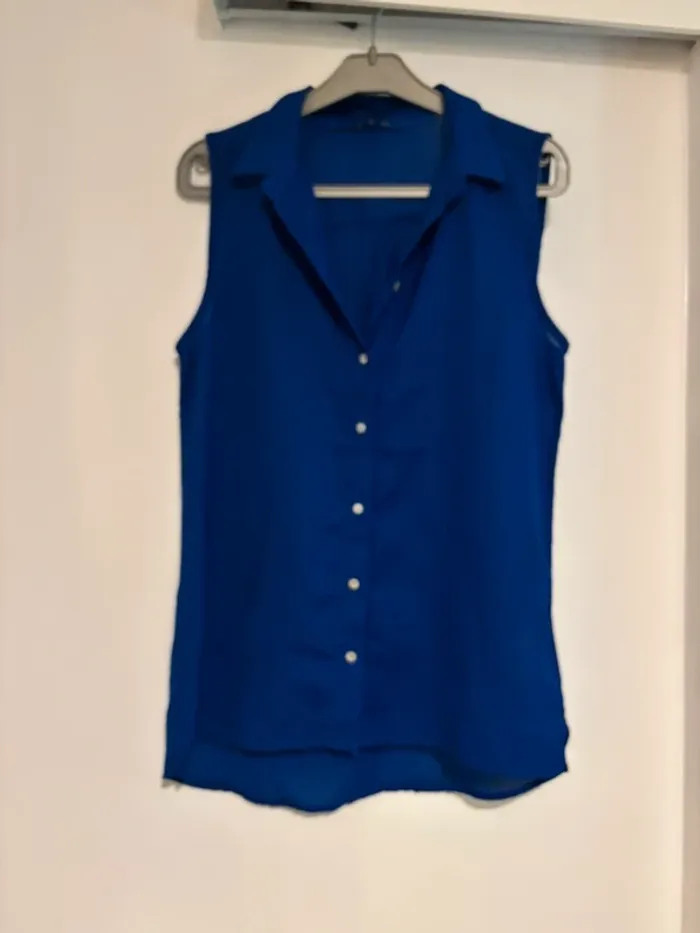 Top bleu sans manches boutonné, taille M - photo numéro 1