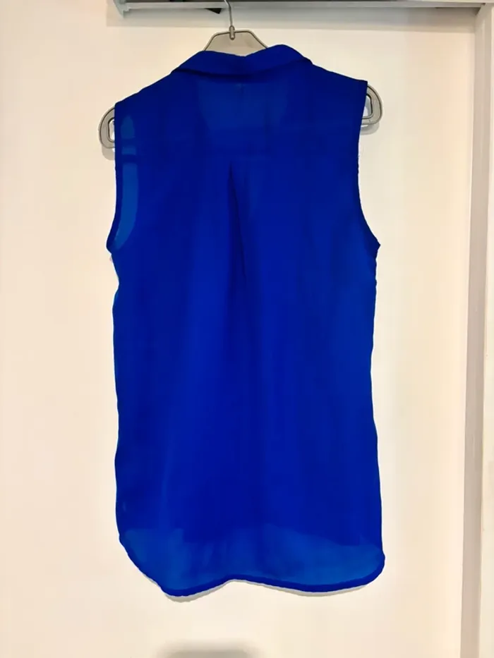 Top bleu sans manches boutonné, taille M - photo numéro 2