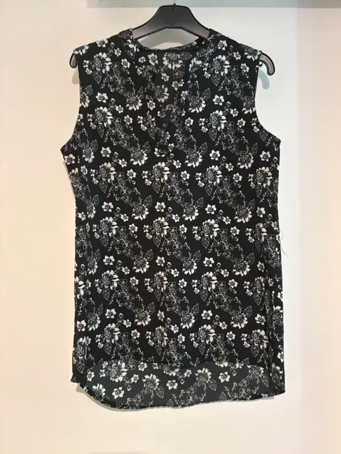 🌸 Haut col V  sans manches fleuri noir & blanc – Zeeman – Taille M - photo numéro 1