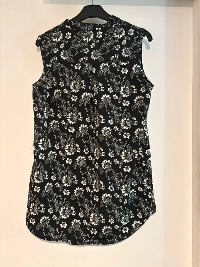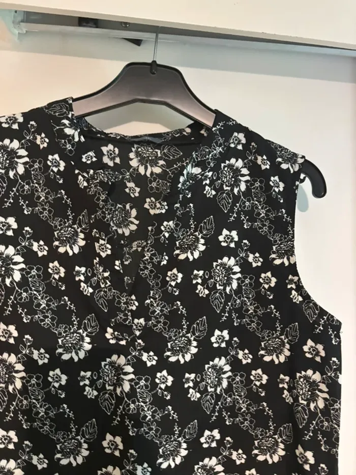 🌸 Haut col V  sans manches fleuri noir & blanc – Zeeman – Taille M - photo numéro 5